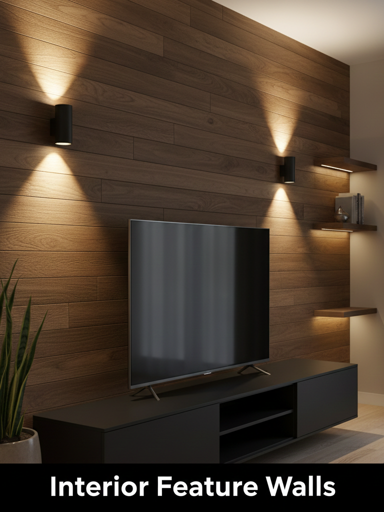 Sirf bahar hi nahi, andar ki taraf bhi agar aapke paas koi “Accent Wall” hai (jaise sofa ke peeche wali deewar), toh wahan ye lights ek dramatic effect create karti hain.